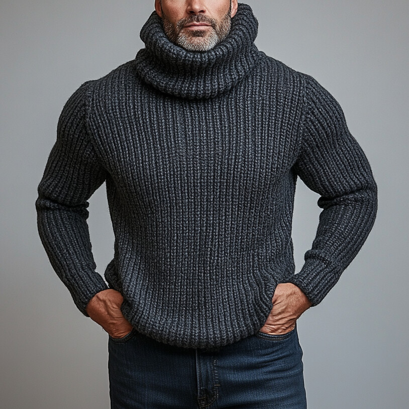Men's High Neck Long Sleeve Rib Knitted Sweater