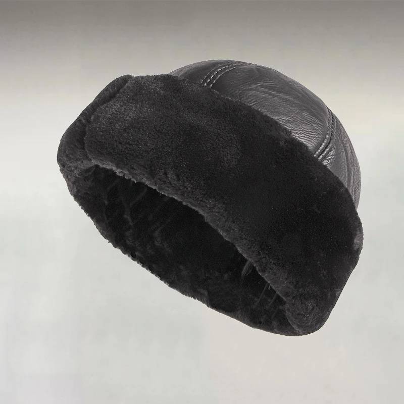 Men's PU Leather Thickened Velvet Warm Hat