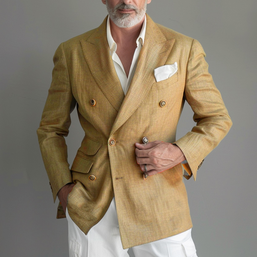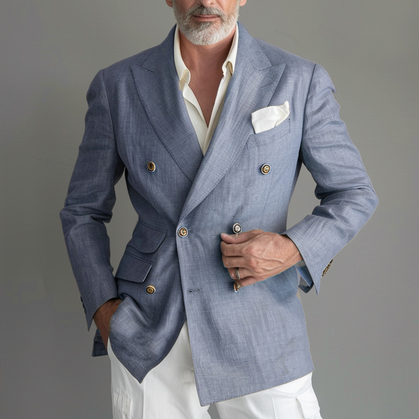 Men's Peak Lapel Double-breasted Plain Blazer