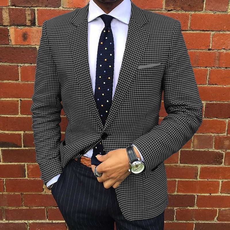 Men's Business Houndstooth Pattern Button Notch Lapel Blazer