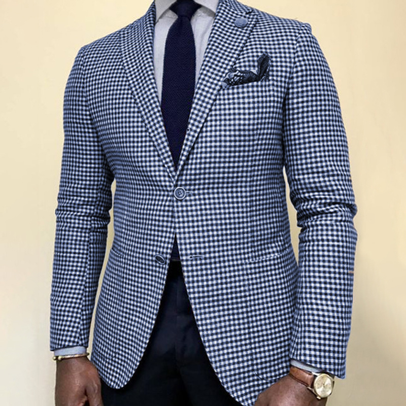 Men's Business Contrast Plaid Two Button Lapel Blazer