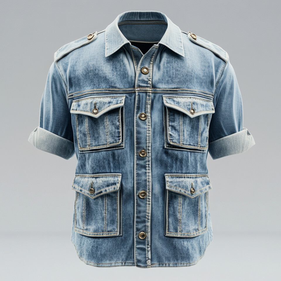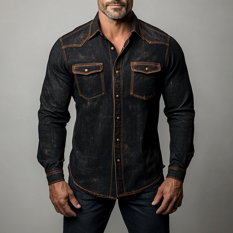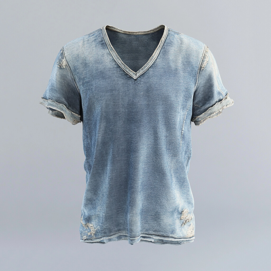 Men's Casual Raw Edge Denim V Neck Long Sleeve Sweatshirt