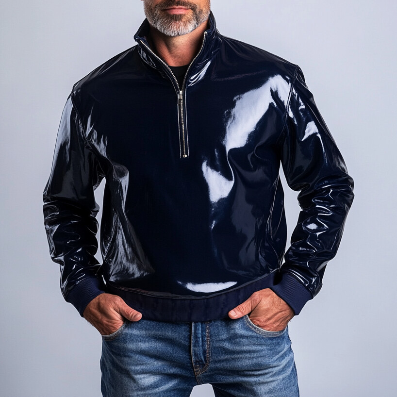 Men's Patent PU Leather Half Zipper Sweatshirt