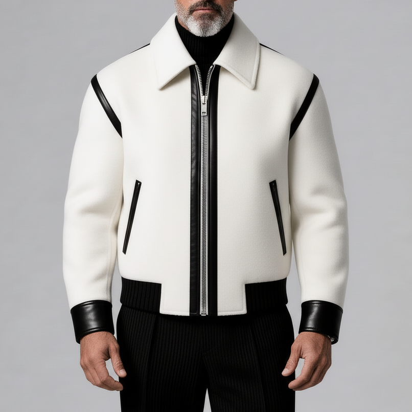 Men’'s Casual Fur Lapel Collar Graphic Pattern Long Sleeve Coat