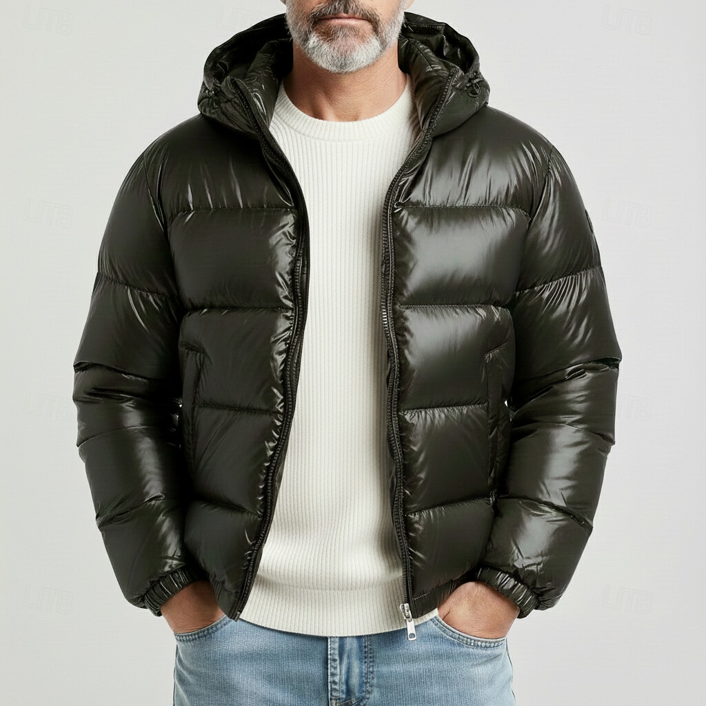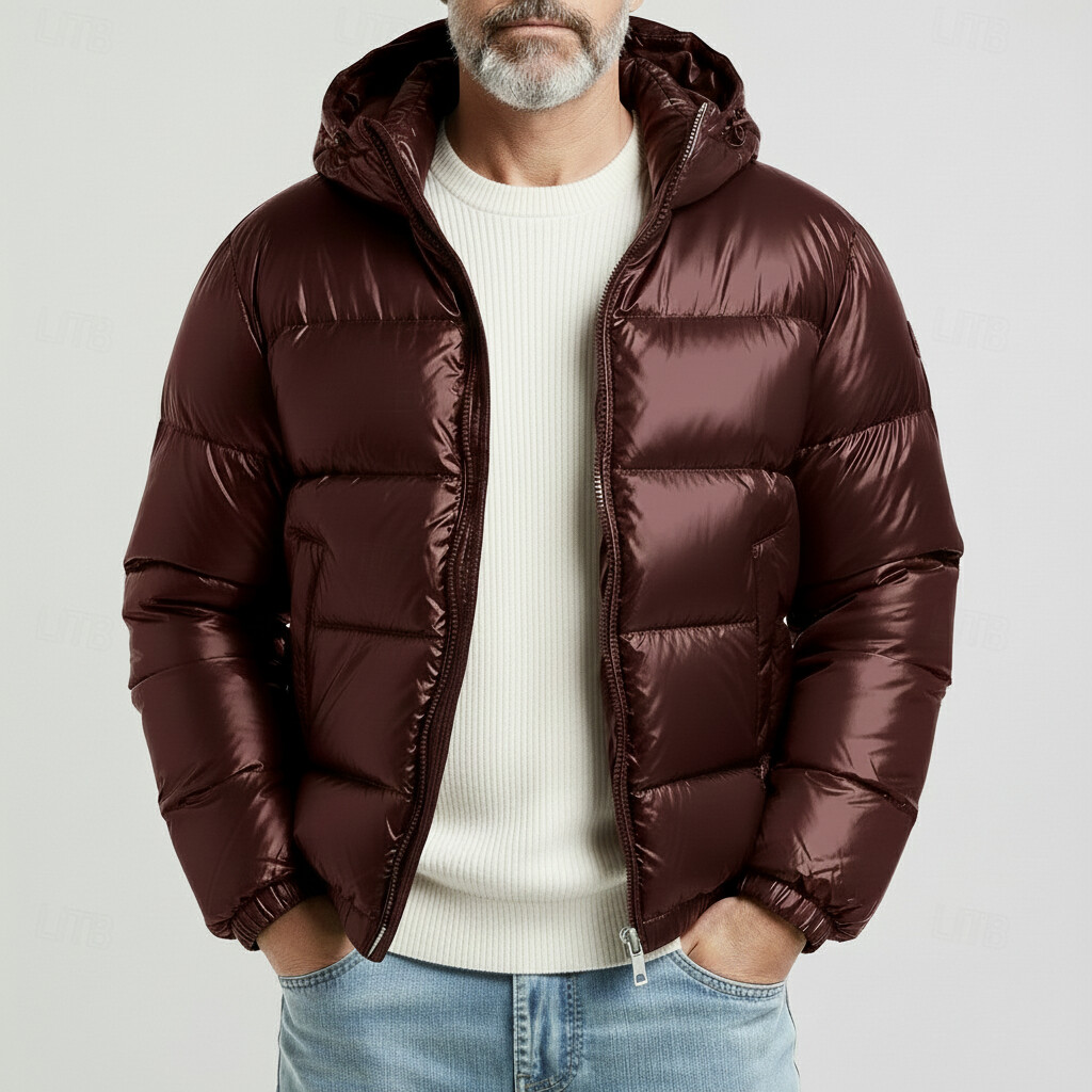 Men's Outdoor Solid Long Sleeve Zippe Hooded Pocket Puffer Jackets
