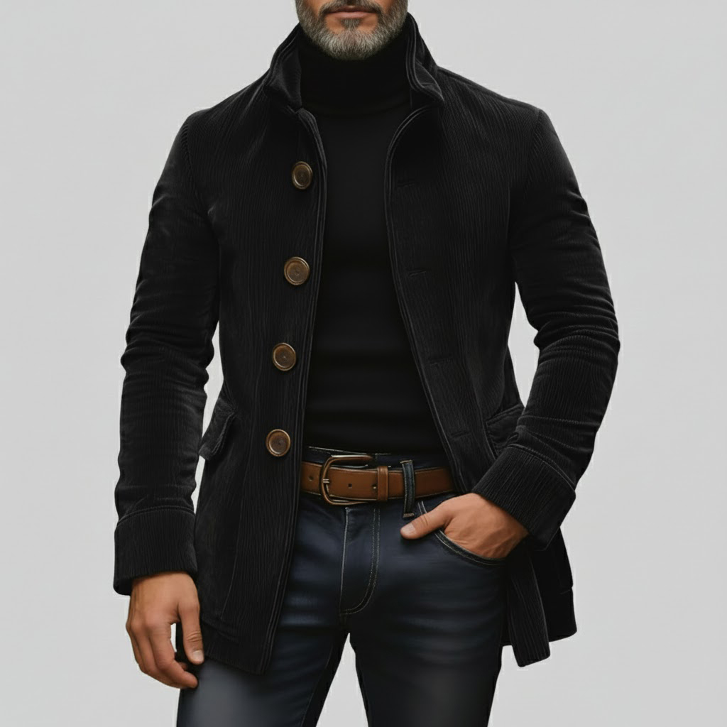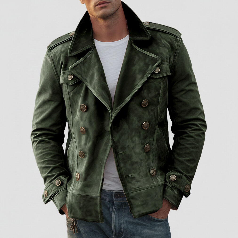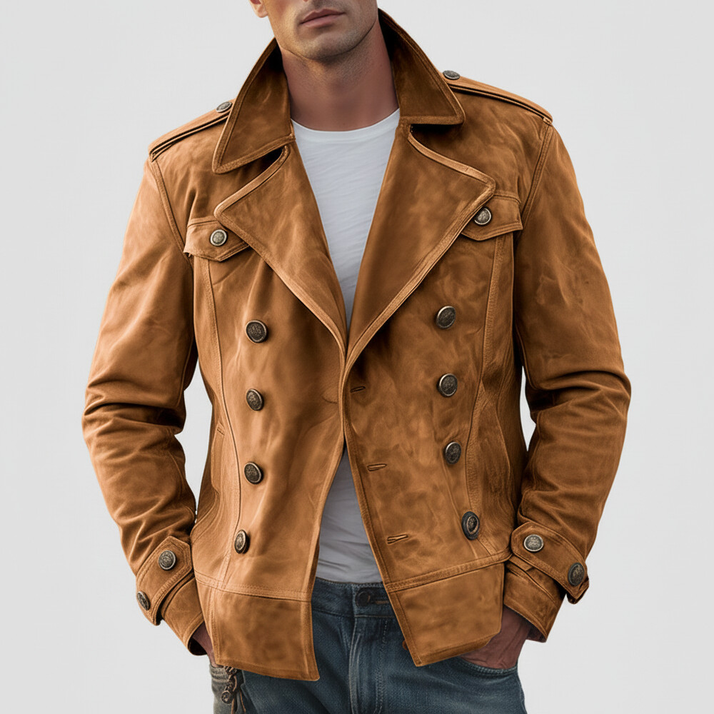 Men's Lapel Collar Double Breasted Pocket Cotton-Padded Coat
