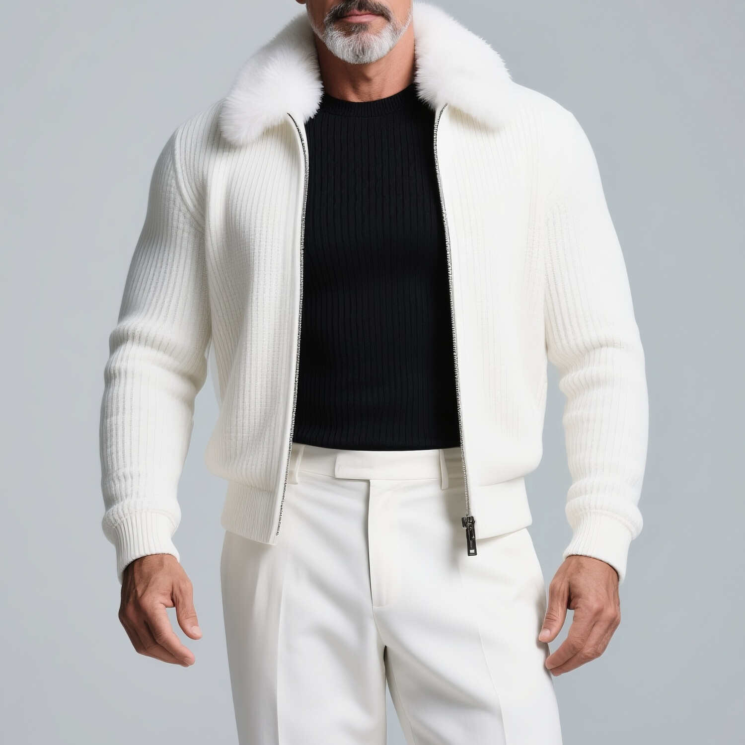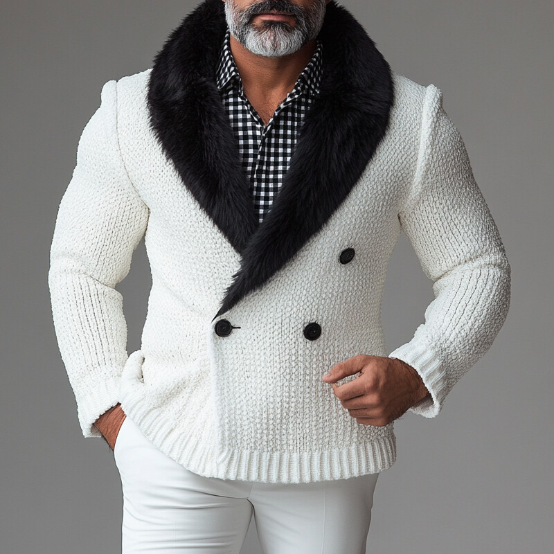 Men's Knit Plush Shawl Lapel Double Breasted Long Sleeve Jacket