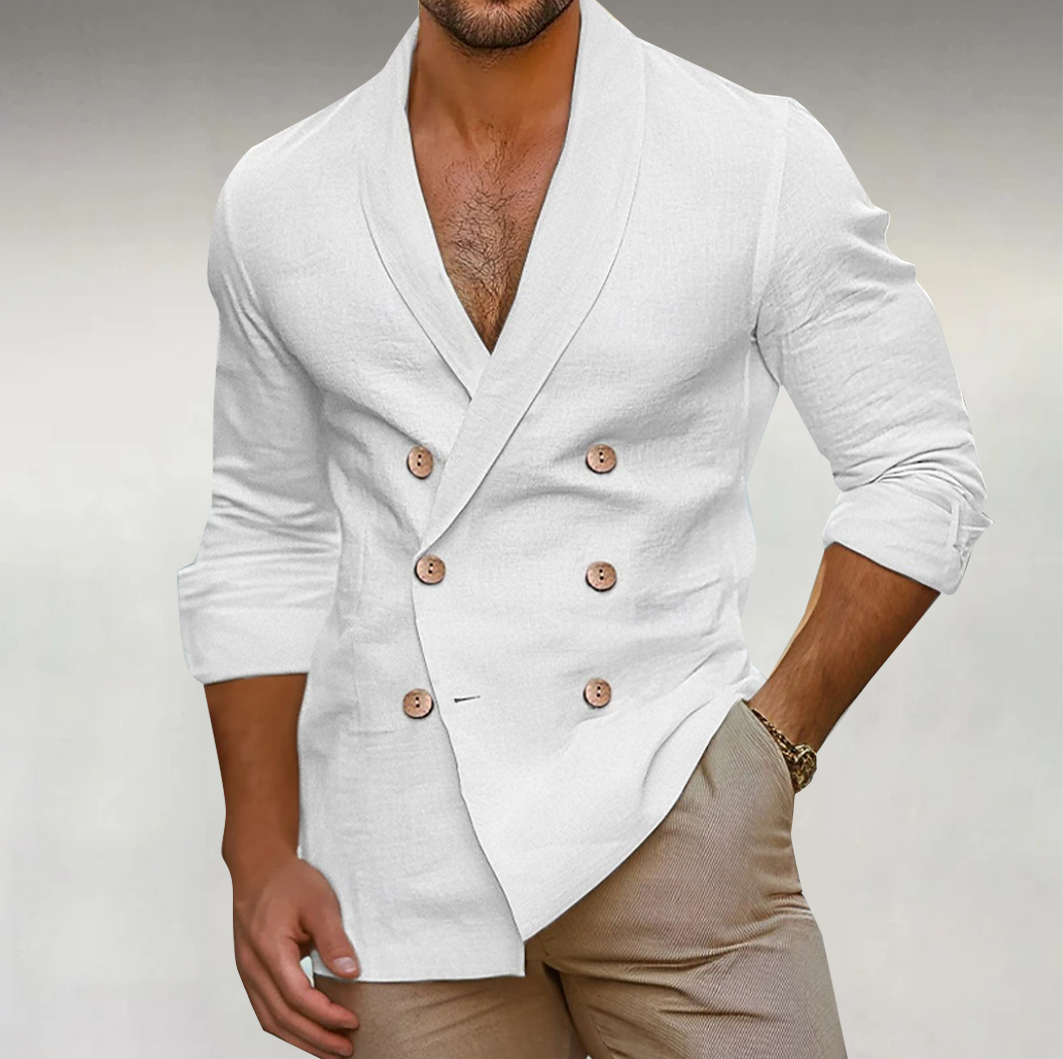 Men's Shawl Lapel Double Breasted Long Sleeve Shirt