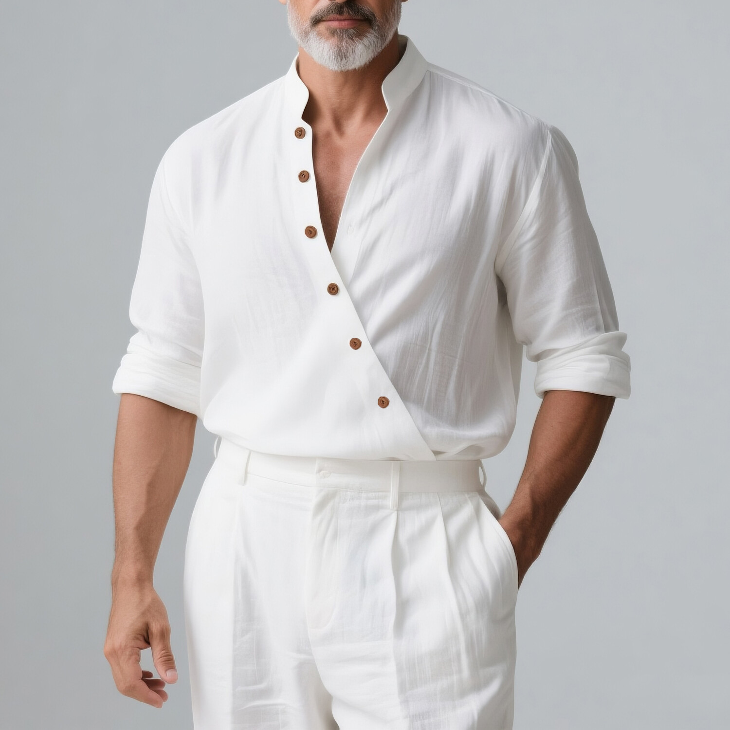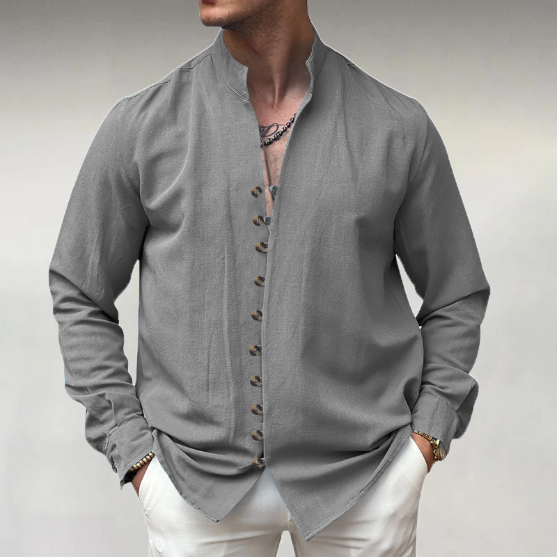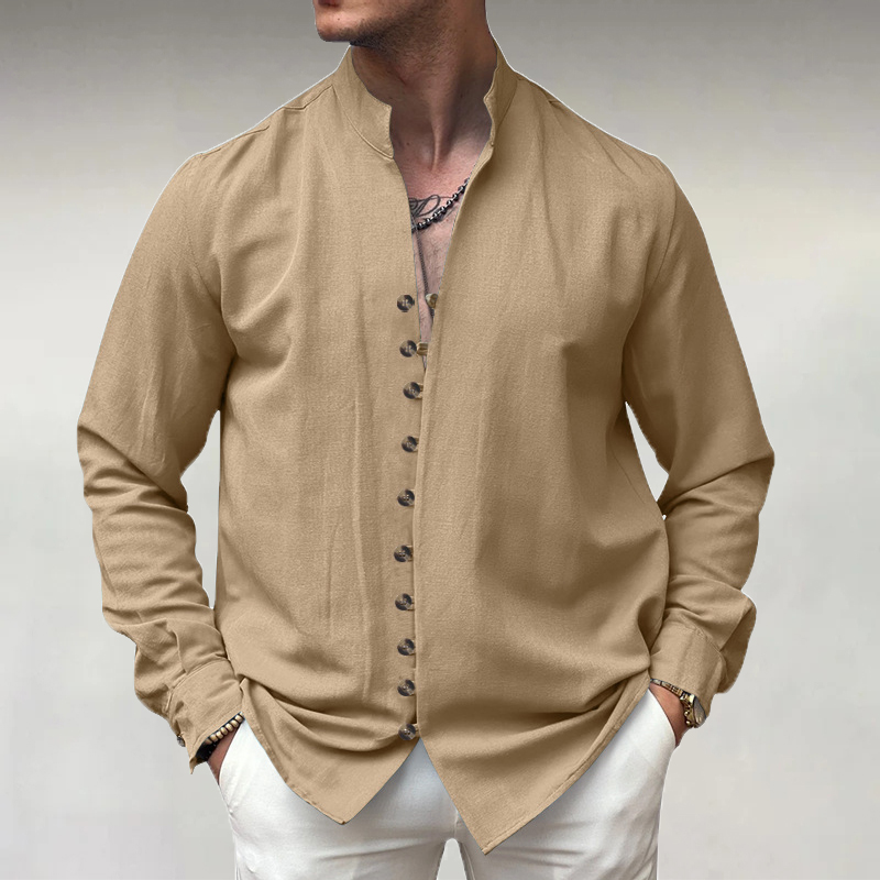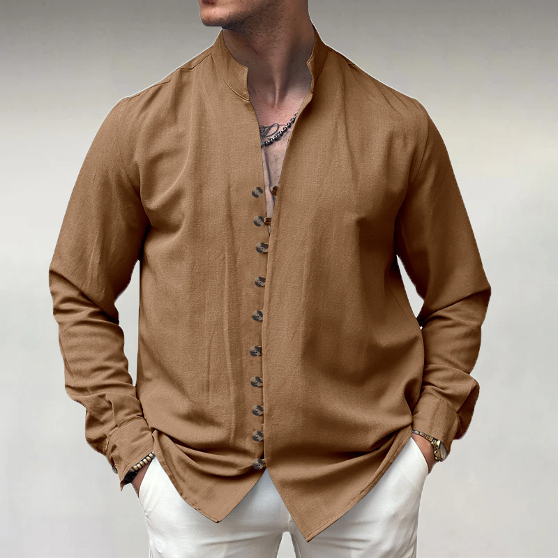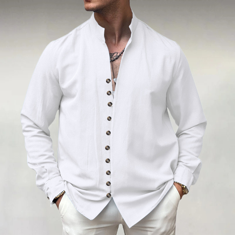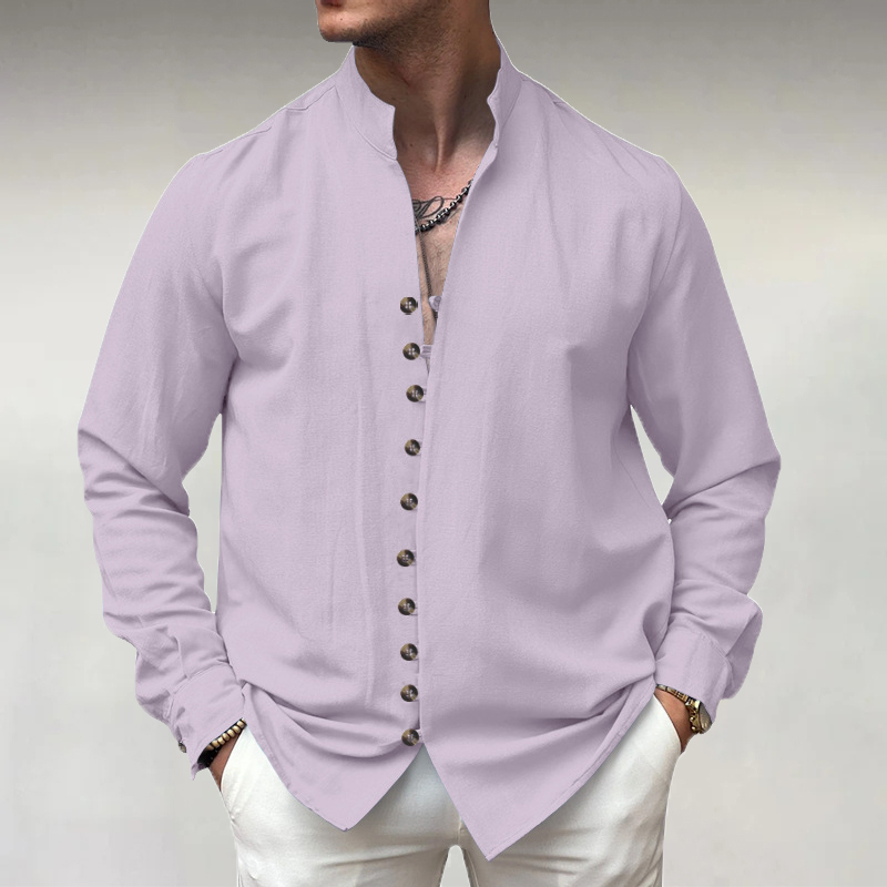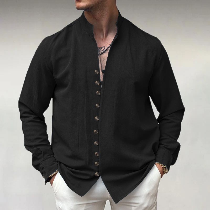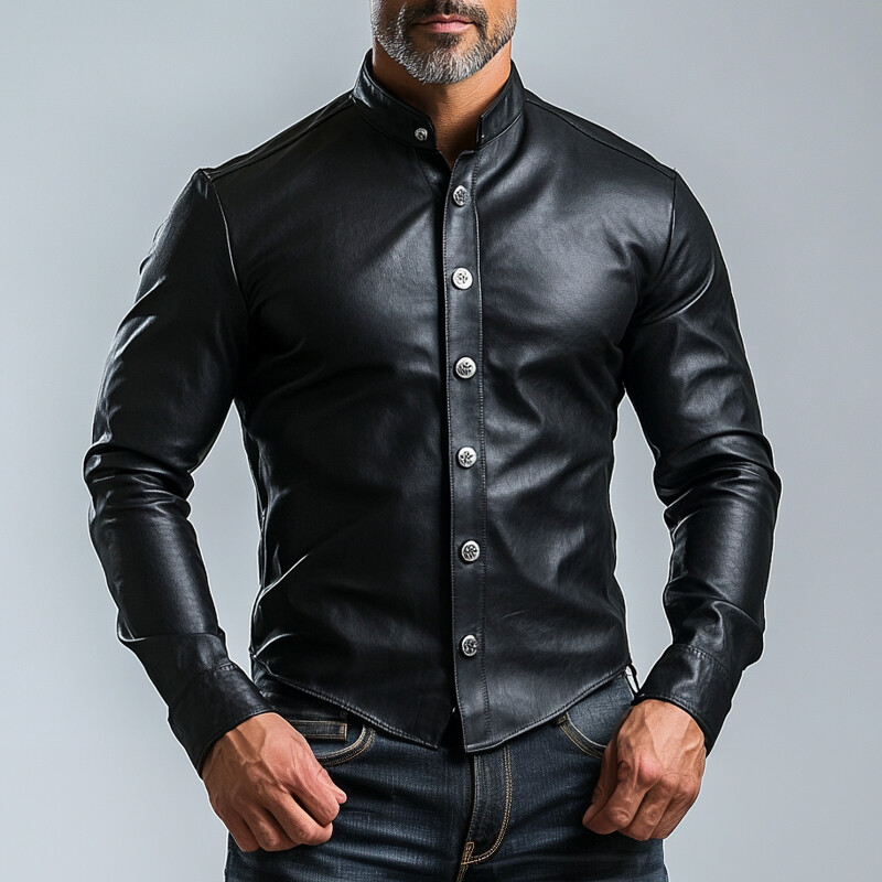 Men's Stand Collar Single Breasted PU Leather Long Sleeve Shirt