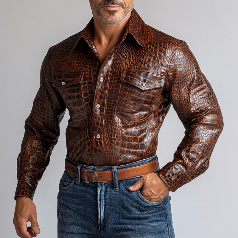 Men's Patent PU Leather Half Zipper Sweatshirt