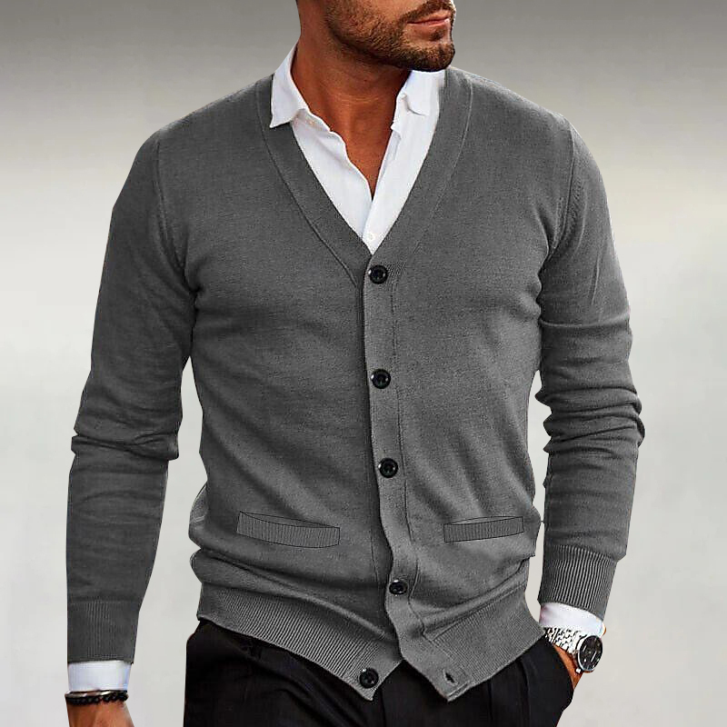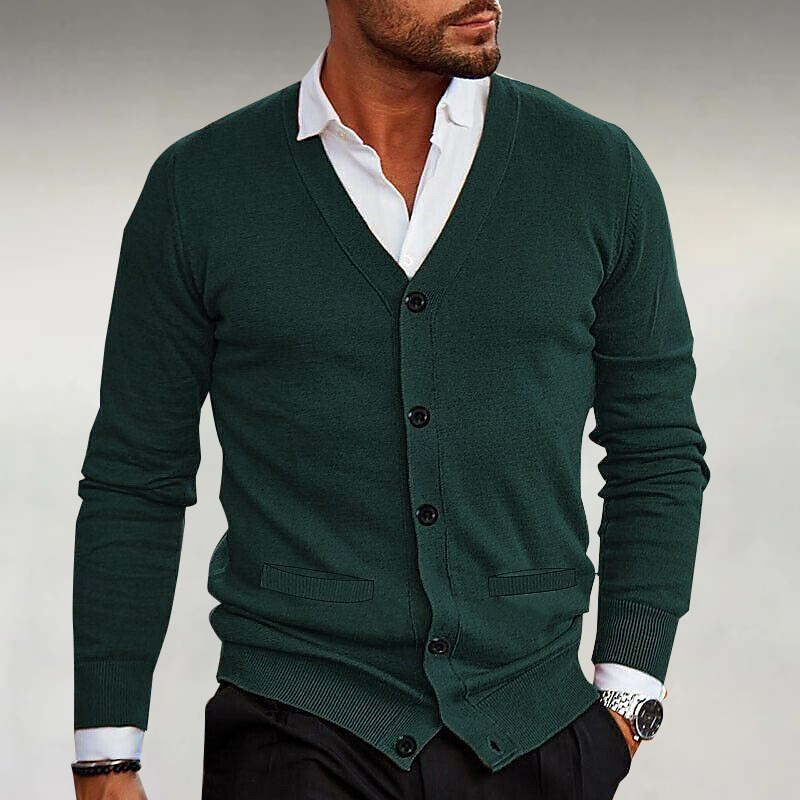 Men's Casual Single Breasted Bilateral Pockets Knitted Cardigan